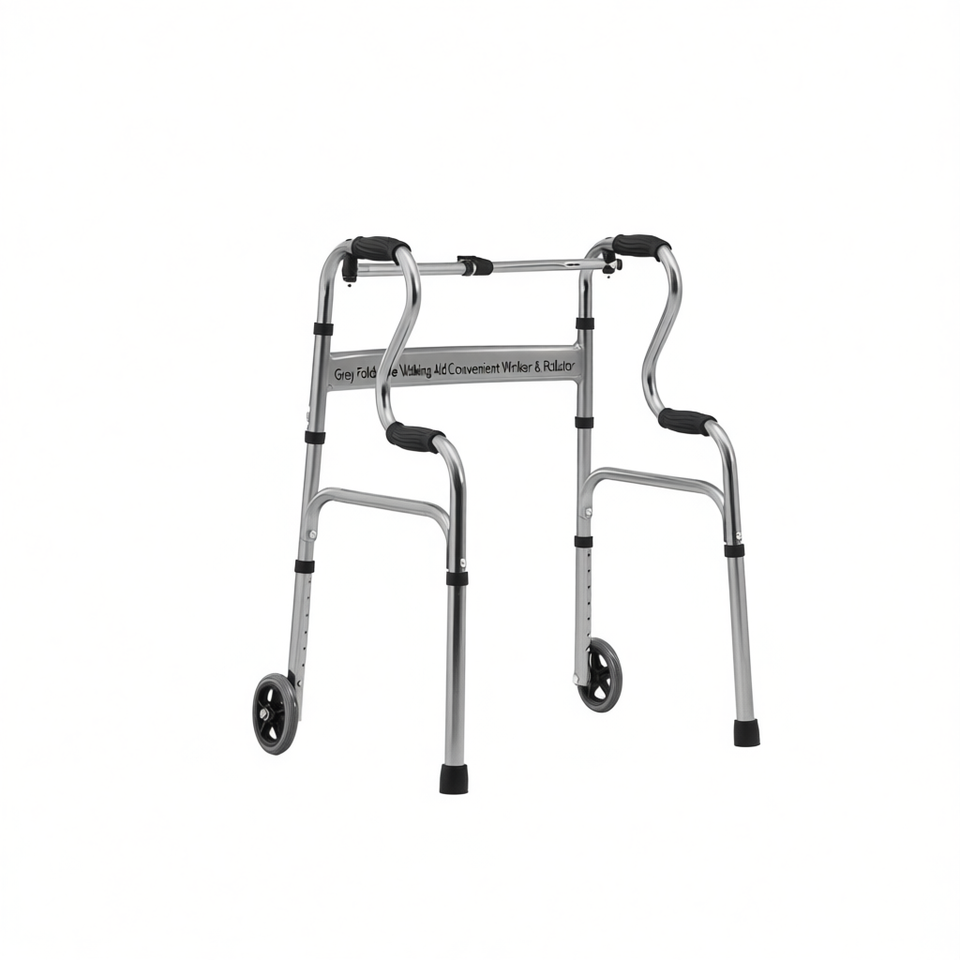 Déambulateur pliable gris avec roues pour l'aide à la mobilité