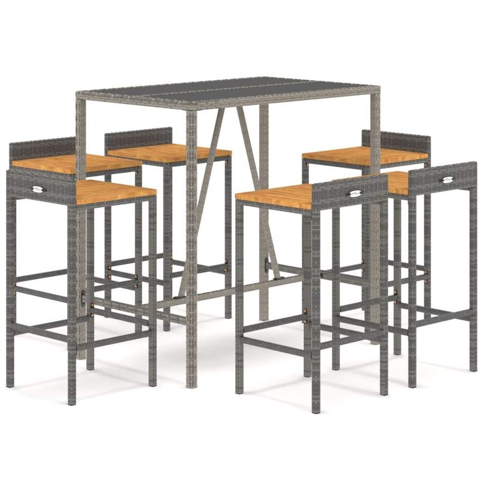 Ensemble de bar de jardin gris 6 places, mobilier d'extérieur en métal, résistant aux intempéries, design moderne