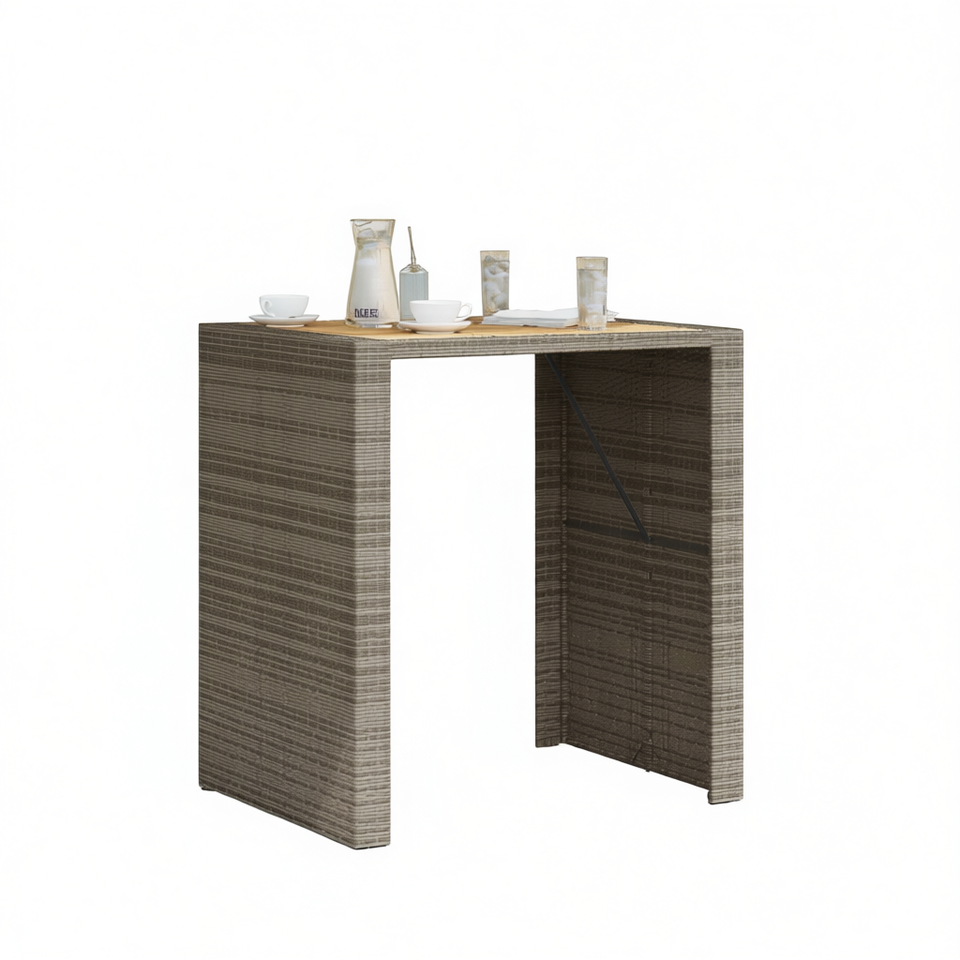 Table de bar rectangulaire en rotin gris 2 places pour extérieur, jardin, style moderne et contemporain, plateau en bois durable, mobilier commercial
