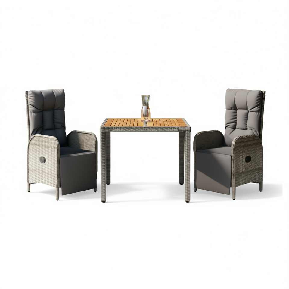 Ensemble de salle à manger de jardin gris 2 places, table en rotin et teck, mobilier d'extérieur contemporain résistant aux intempéries