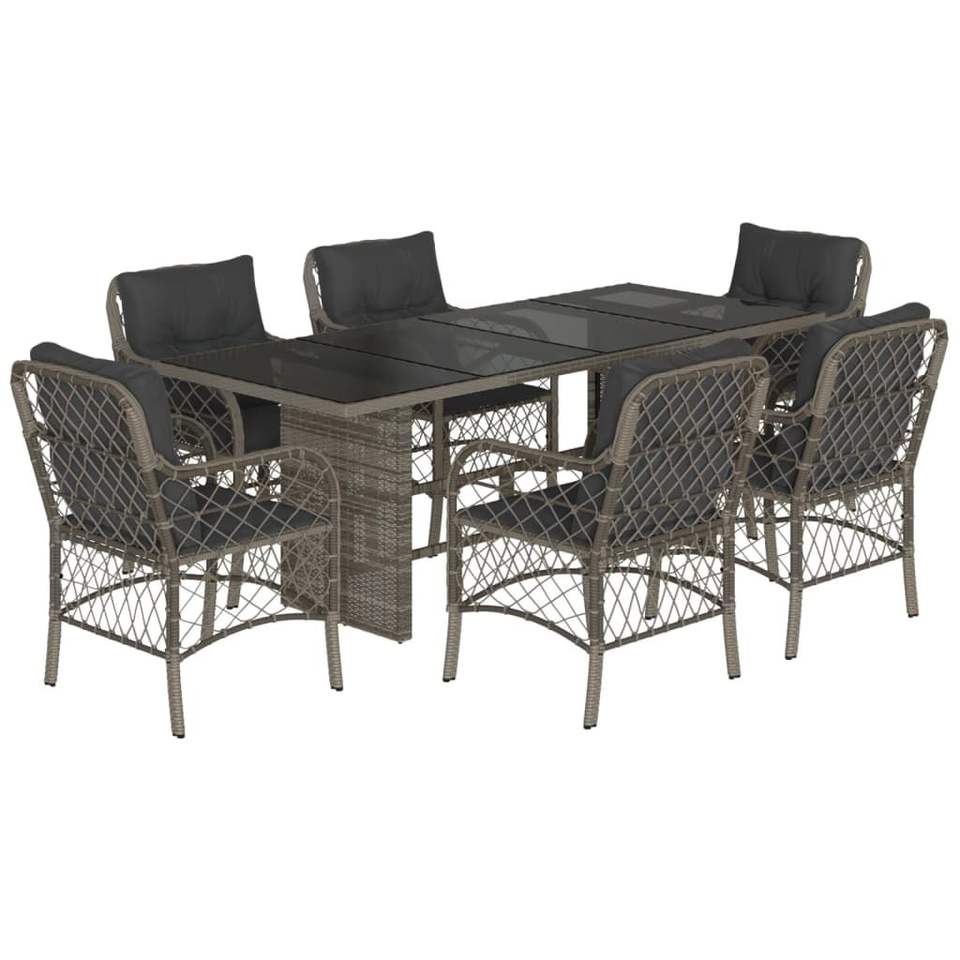 Ensemble de salle à manger de jardin en rotin gris 6 places, résistant aux intempéries, mobilier d'extérieur