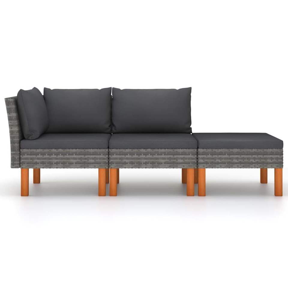Ensemble de salon de jardin gris 3 places en rotin, mobilier d'extérieur avec structure en teck, design contemporain