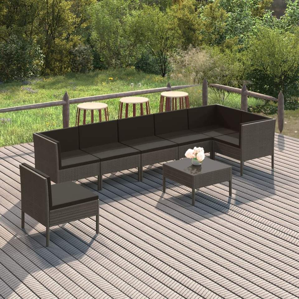 Ensemble de salon de jardin gris 6 places en rotin, mobilier d'extérieur au design contemporain