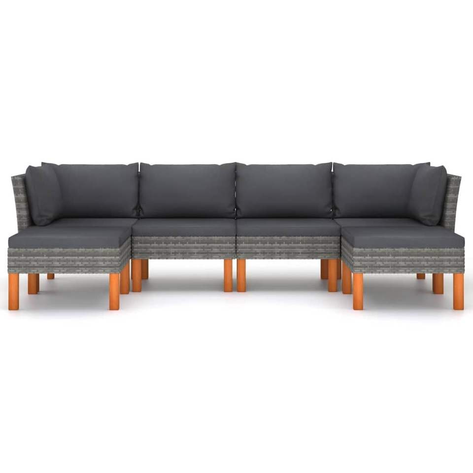 Grey Rattan Garden Lounge Set 6 Seater Outdoor Furniture Contemporary Design Teak Wood Frame