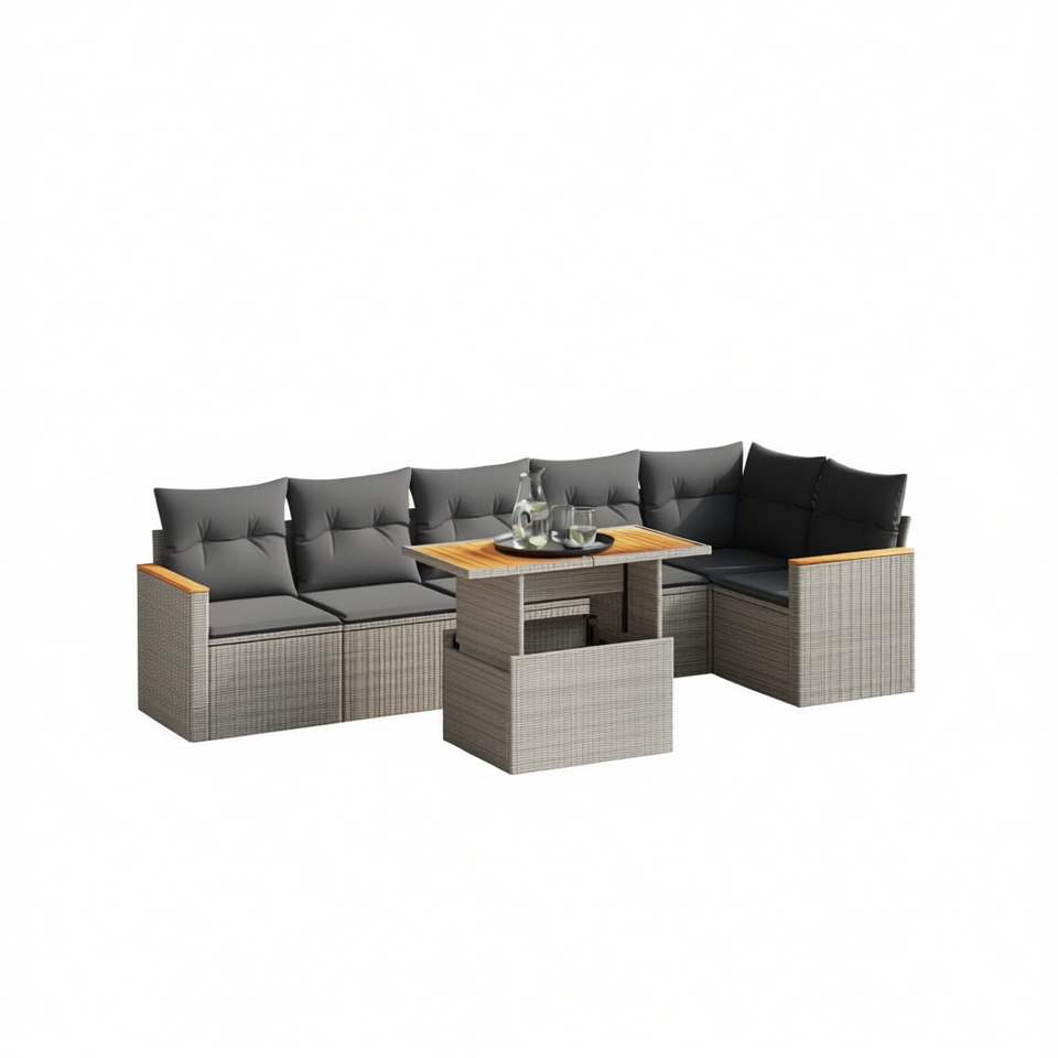 Ensemble de canapés de jardin gris en rotin pour l'extérieur avec coussins imperméables, design contemporain pour terrasse ou balcon