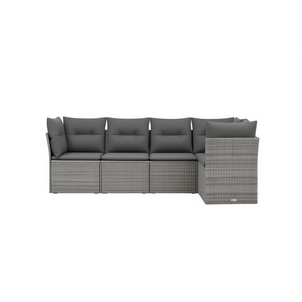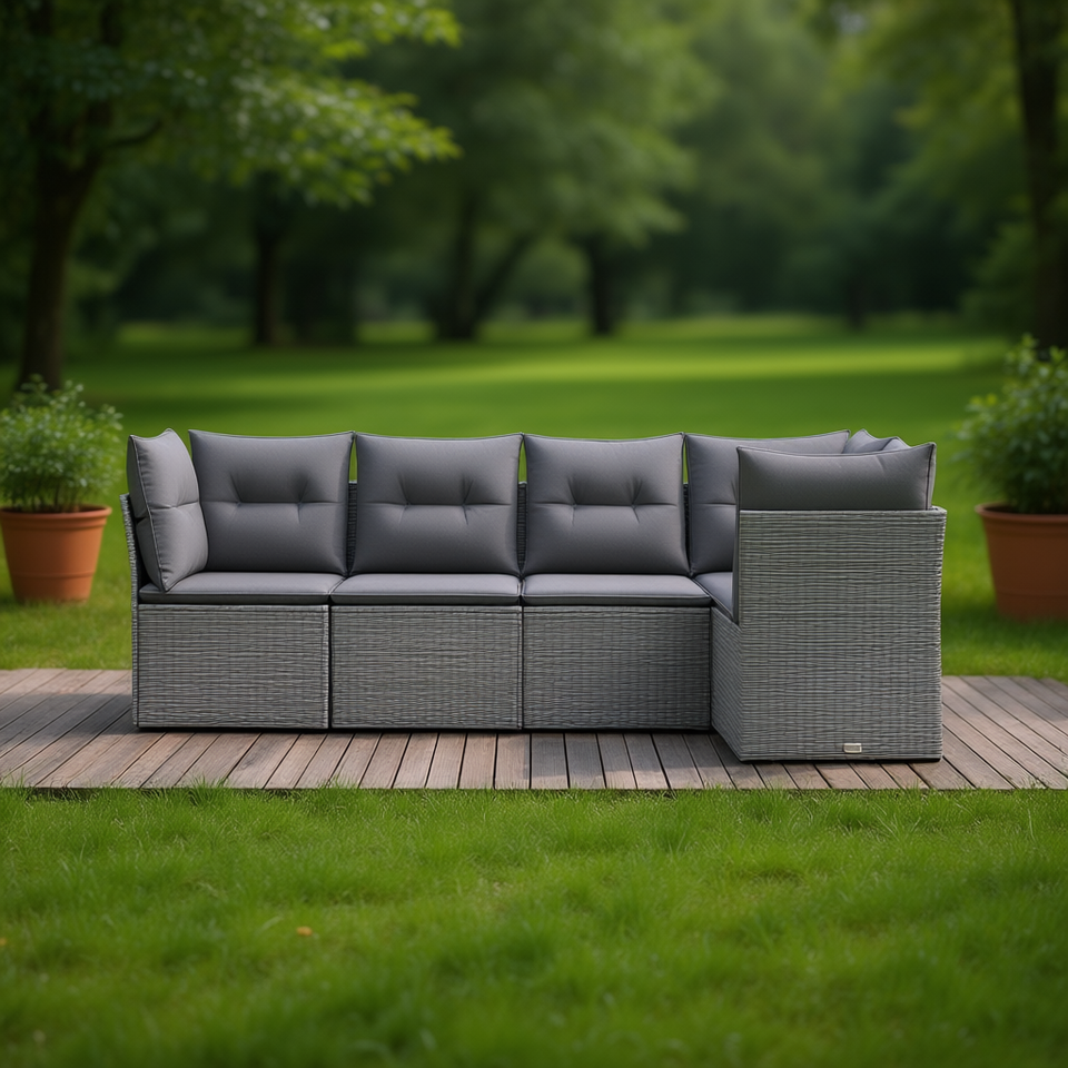 Ensemble de canapés de jardin gris en rotin, mobilier d'extérieur avec coussins, 4 places, design contemporain