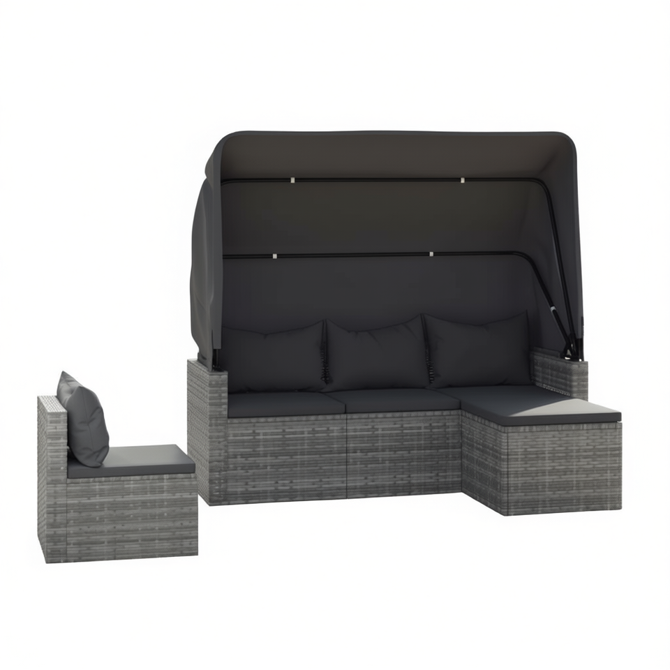 Ensemble de canapés de jardin gris avec auvent, 4 places, meubles en rotin d'extérieur, design contemporain
