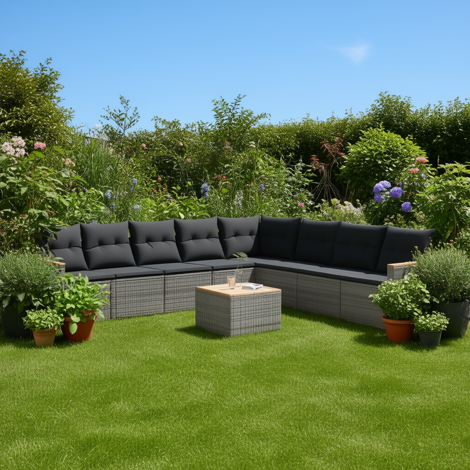 Ensemble de canapés de jardin en rotin gris 8 places, mobilier d'extérieur résistant aux intempéries, design contemporain