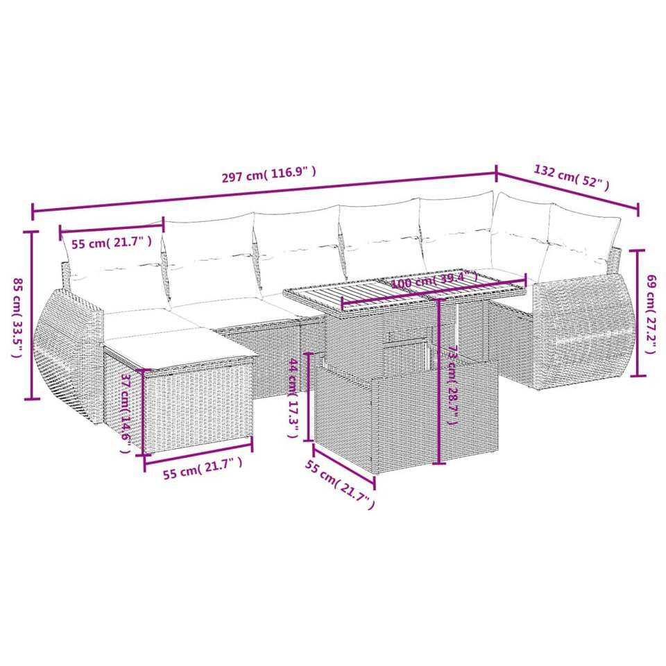 Ensemble de canapés de jardin en rotin gris 6 places, mobilier d'extérieur avec rangement, design contemporain