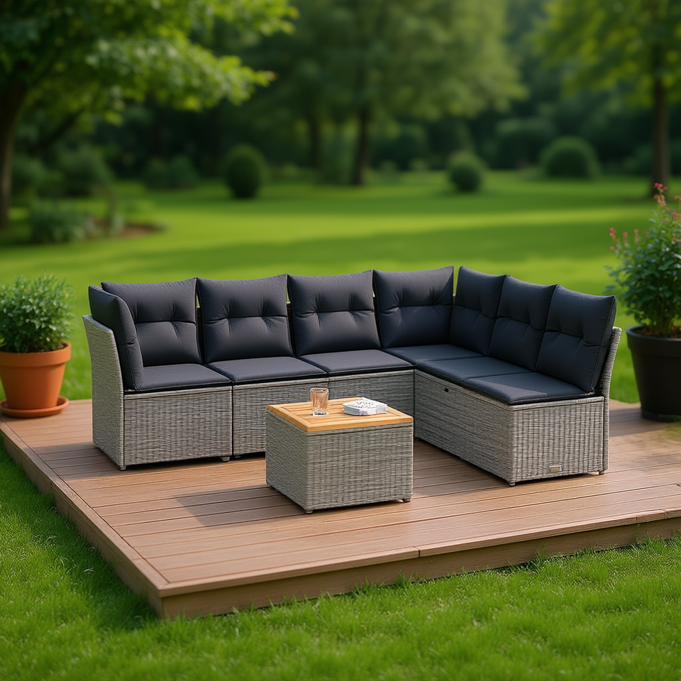 Ensemble de canapés de jardin en rotin gris 6 places, mobilier d'extérieur résistant aux intempéries, design contemporain