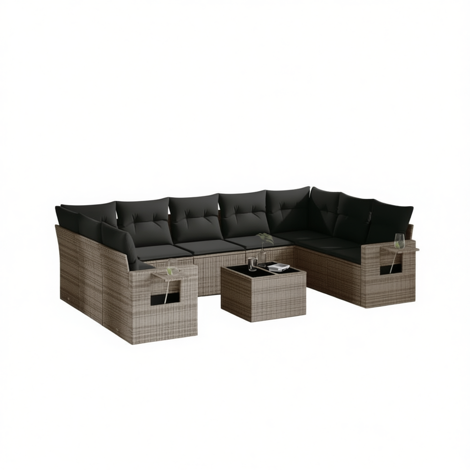 Ensemble de canapés de jardin en rotin gris 6 places, mobilier d'extérieur contemporain résistant aux intempéries