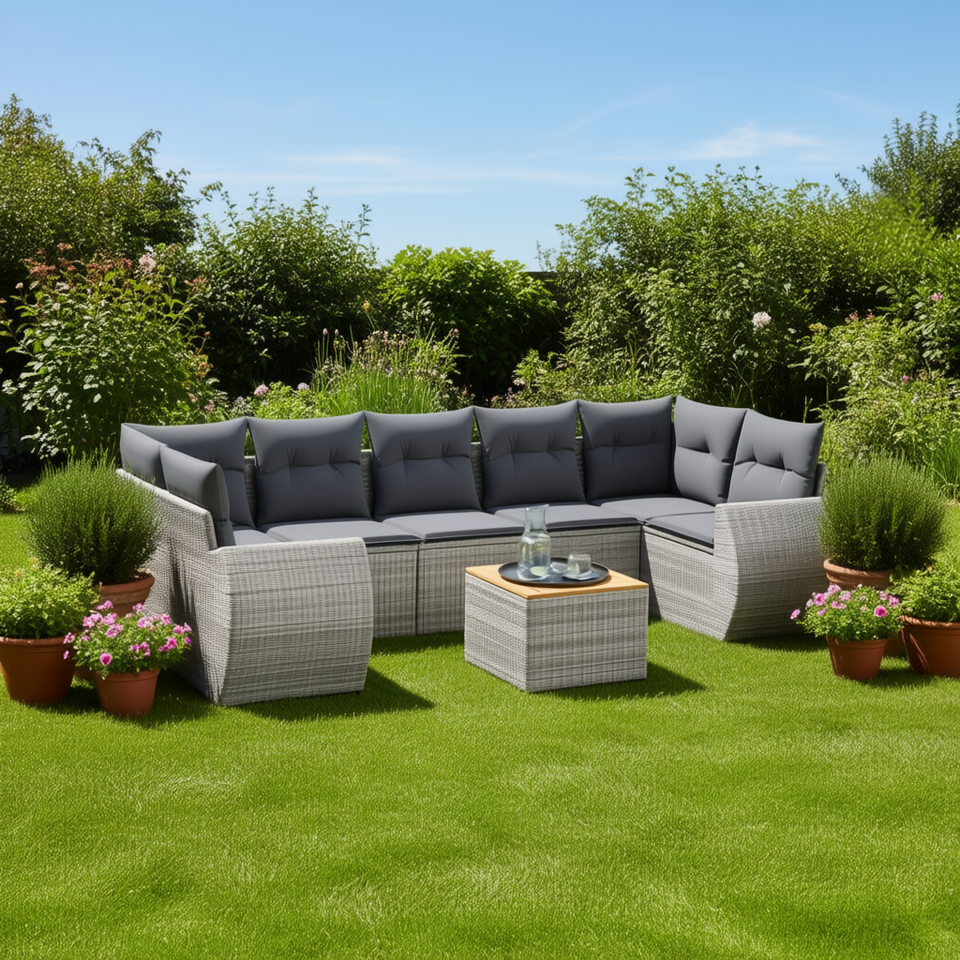 Ensemble de canapés de jardin en rotin gris 6 places, résistant aux intempéries, mobilier d'extérieur au design contemporain
