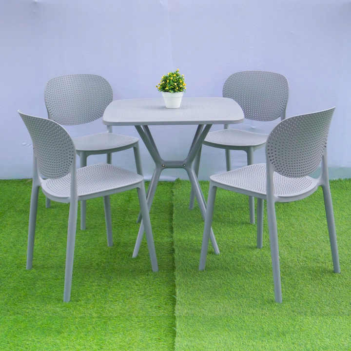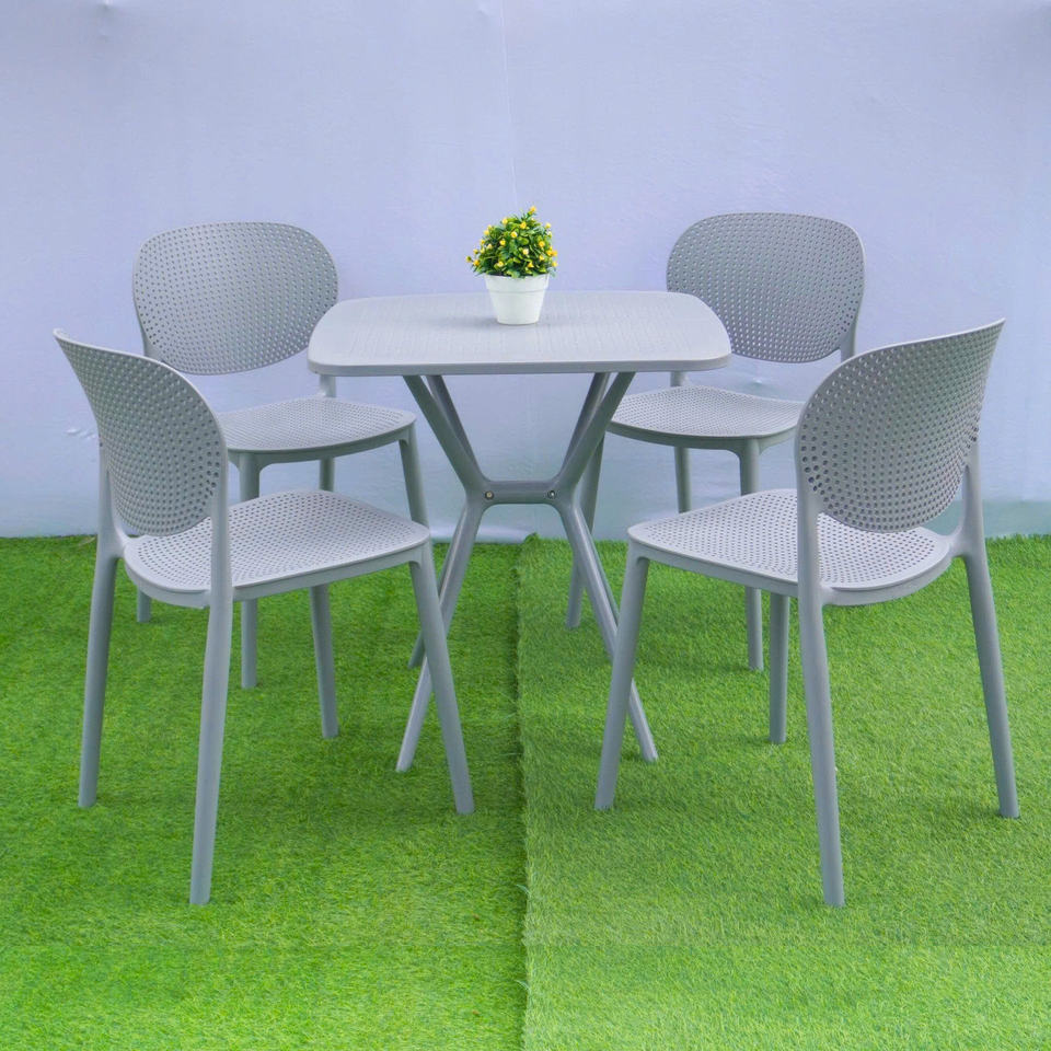 Chaise de jardin en plastique moulé gris haut de gamme moderne avec trous - Imperméable, durable, confortable et empilable, mobilier d'extérieur