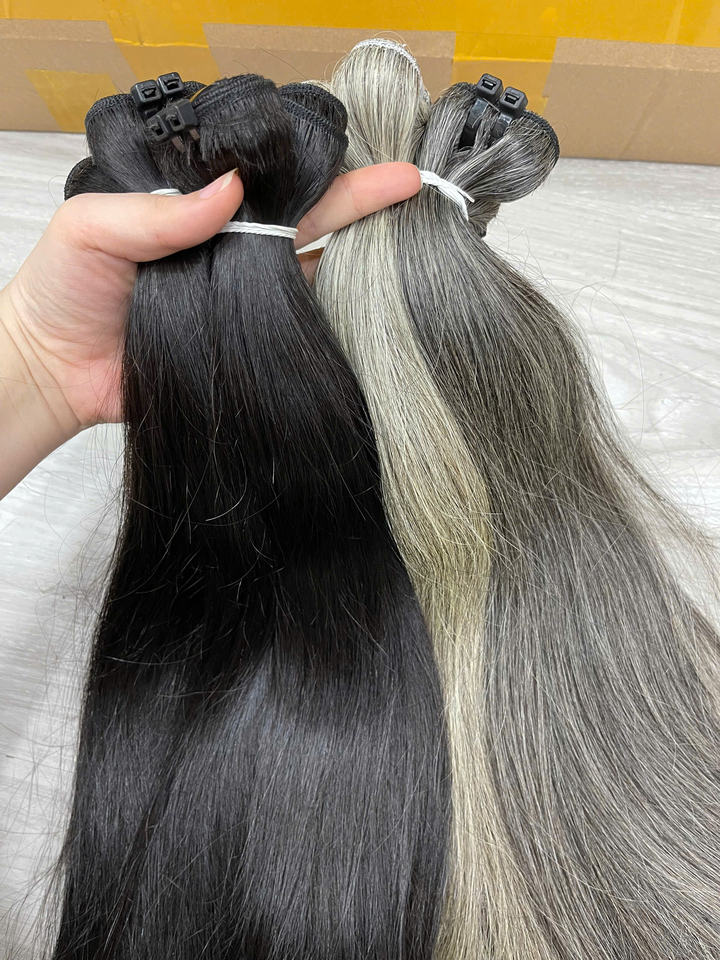 Extensions de cheveux humains gris – Couleur gris argenté – Aspect doux et naturel