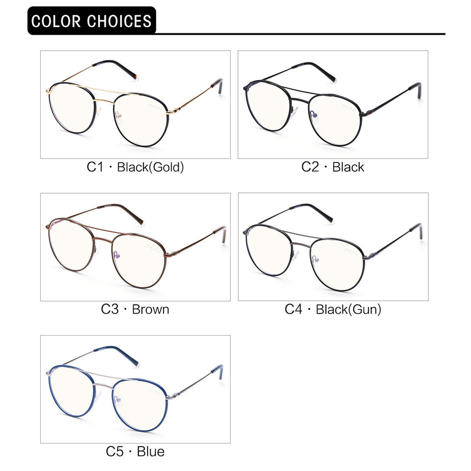 Lunettes de vue anti-lumière bleue grises à monture ronde complète, style rétro unisexe, montures métalliques, modèle 9007