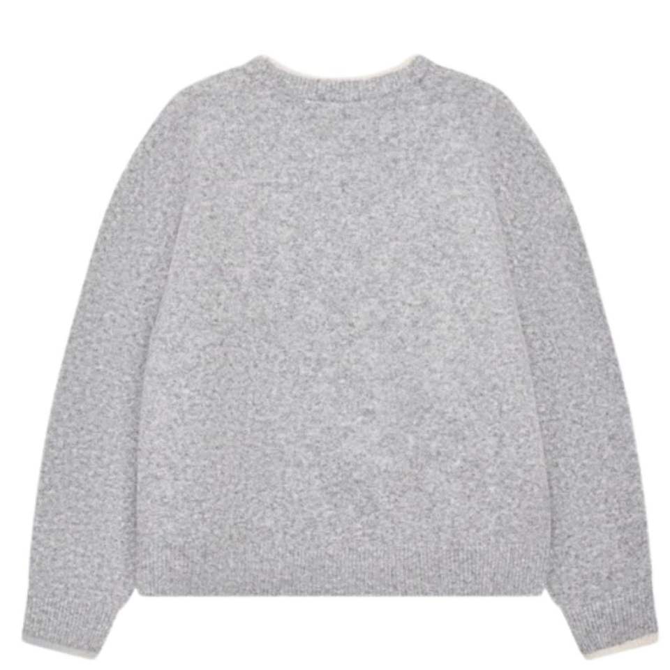 Pull en maille gris à col rond avec bordure contrastée, doux, confortable, ajusté, léger, pour un usage décontracté