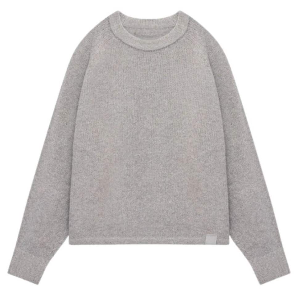 Pull décontracté en maille bouclée gris chiné à manches raglan pour homme – Doux, confortable, coupe ajustée, tendance, chaud et élégant pour l'hiver