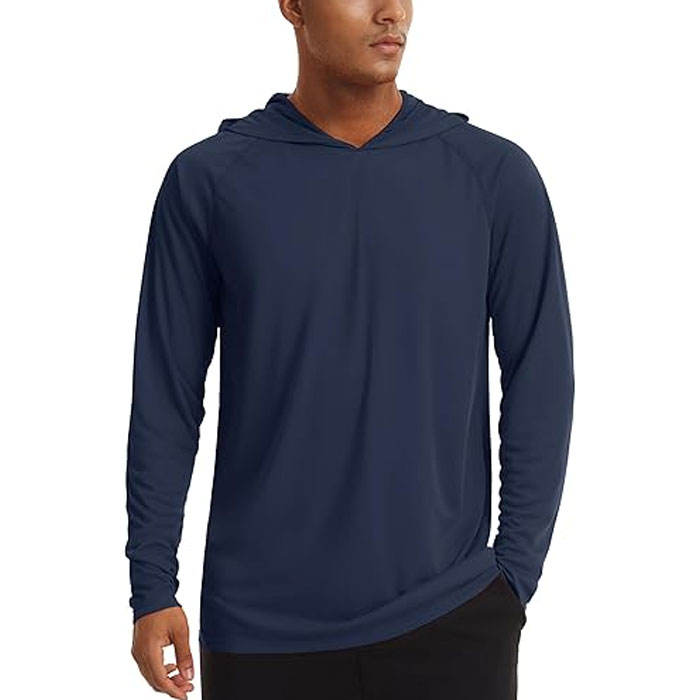 Sweat à capuche pour homme avec protection solaire UPF, manches longues, pour l'entraînement, la course à pied, la pêche, la randonnée, avec trous pour les pouces