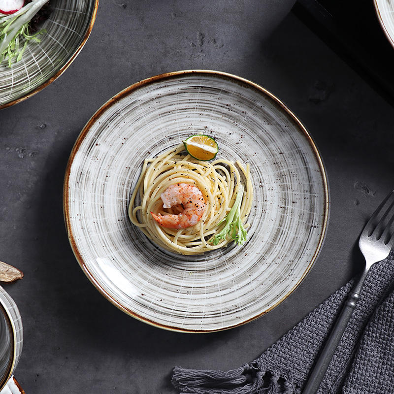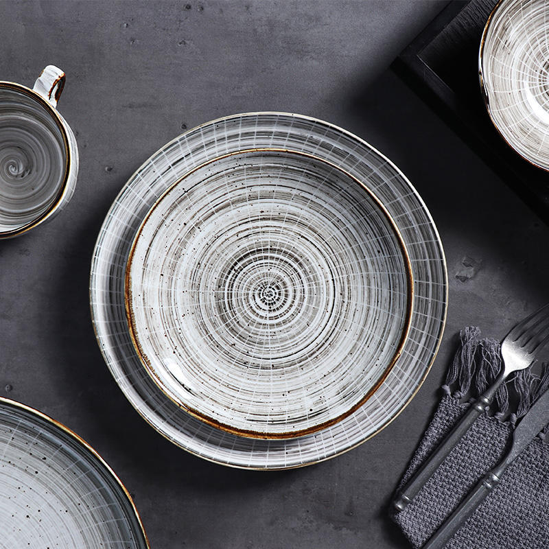 Assiettes de restaurant Michell grises ensemble d'assiettes à dîner en porcelaine vaisselle européenne rubans plats assiettes en céramique restaurants vaisselle