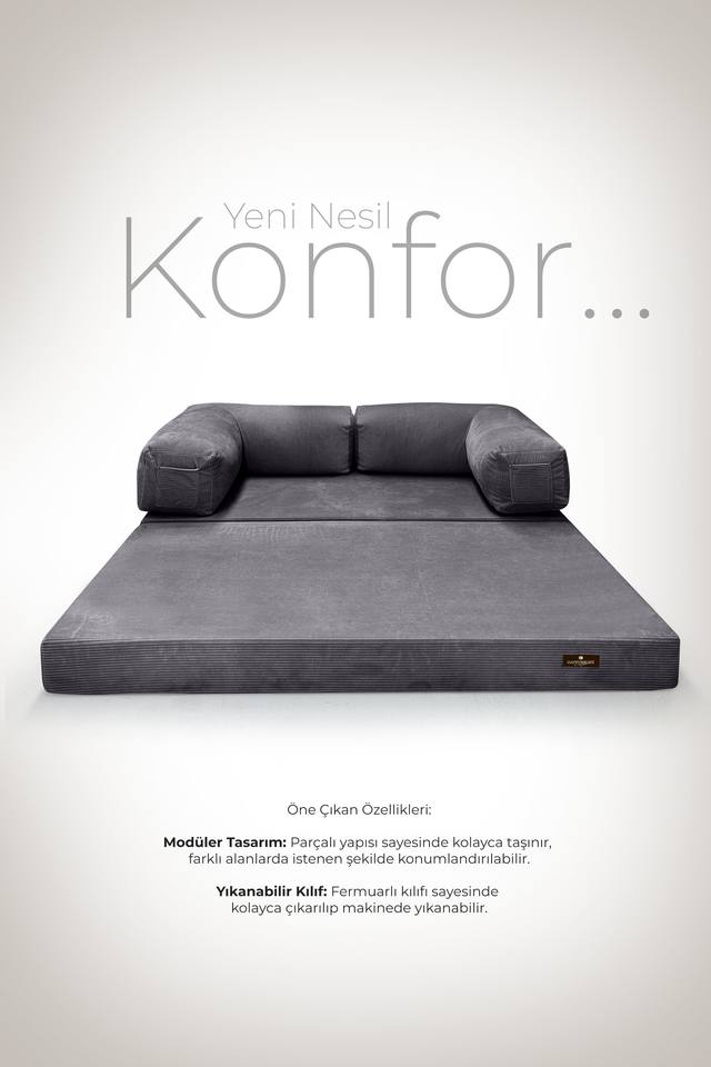 Canapé en mousse modulaire gris avec dossiers mobiles Emballage en rouleau Transport facile avec poches latérales Canapé confortable haute densité