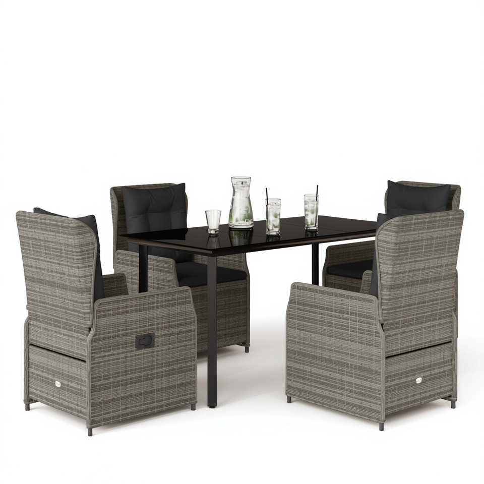 Ensemble de salle à manger de jardin en rotin PE gris 4 places, mobilier d'extérieur de style contemporain, structure en acier résistant aux intempéries