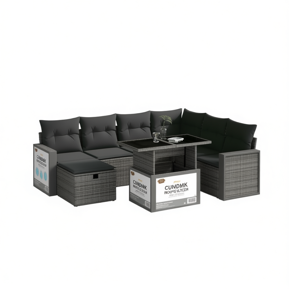 Ensemble de canapés de jardin en rotin PE gris, mobilier de patio extérieur, tissu durable, design contemporain