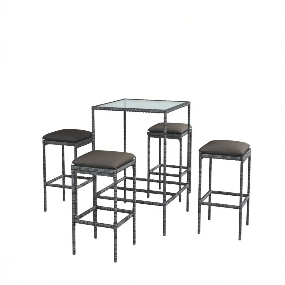 Ensemble de bar de jardin en rotin gris avec verre trempé, mobilier d'extérieur 4 places, style contemporain