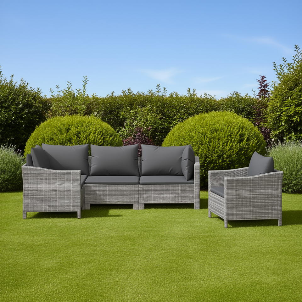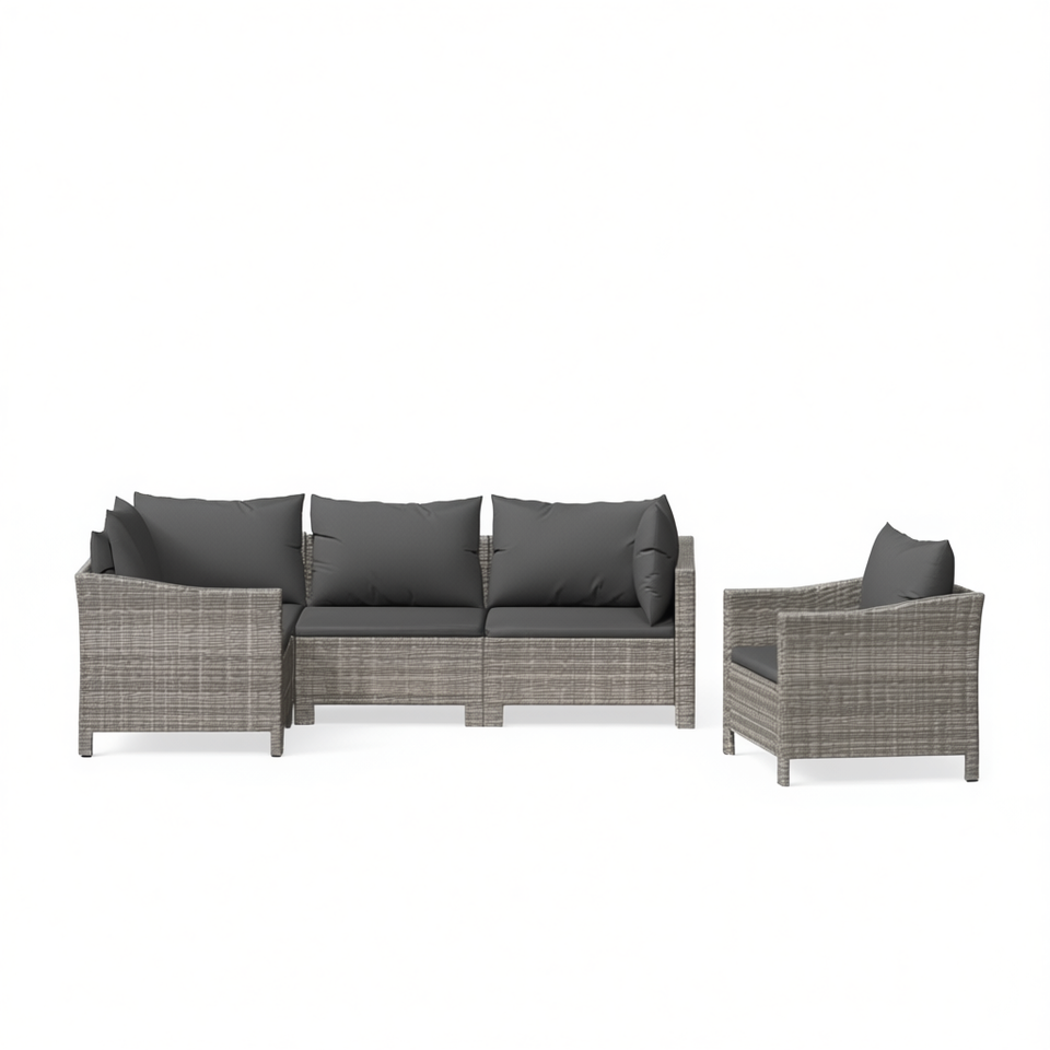 Ensemble de salon de jardin en rotin gris, 5 pièces, meubles d'extérieur résistants aux intempéries, design contemporain
