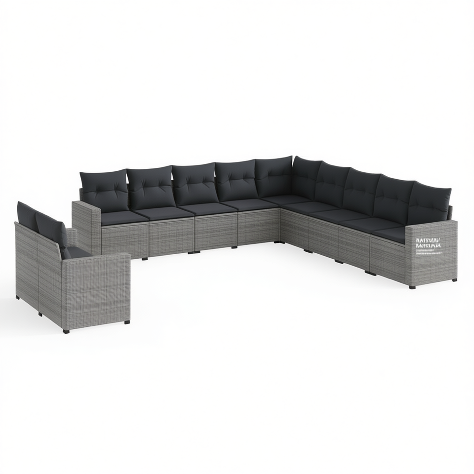 Ensemble de canapés de jardin en rotin gris, 10 places, pieds réglables, mobilier d'extérieur, design contemporain