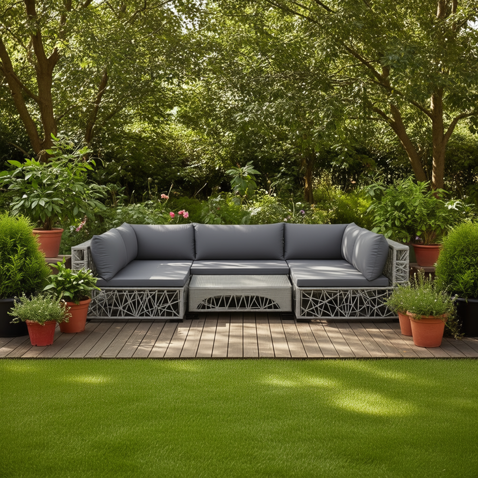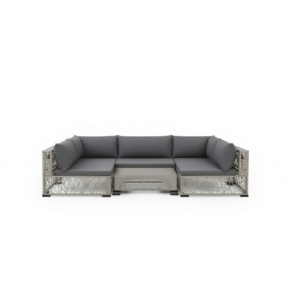 Ensemble de salon de jardin en rotin gris Pe, 6 places, accoudoirs réglables, mobilier de jardin extérieur, design contemporain