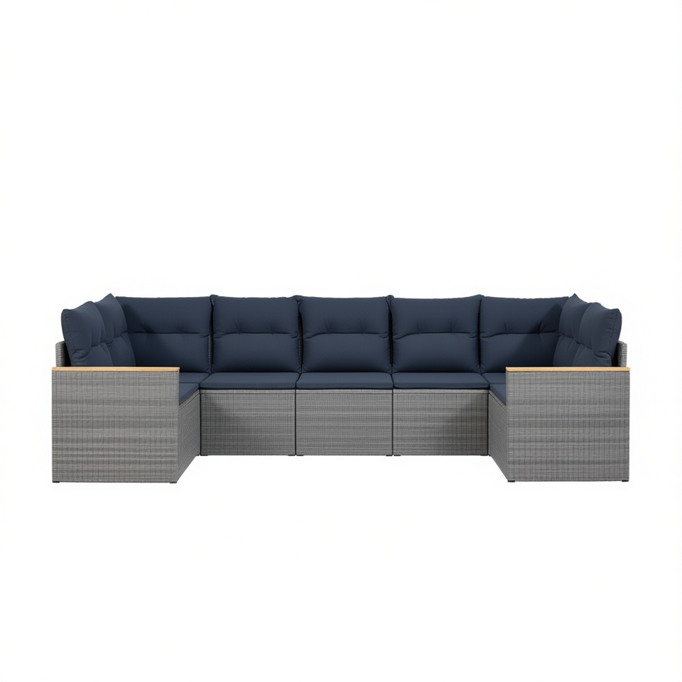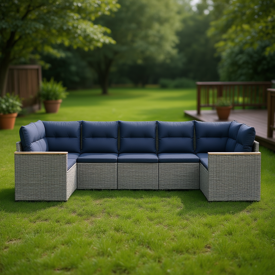 Ensemble de canapés de jardin en polyrotin gris 6 places avec coussins, mobilier d'extérieur au design contemporain