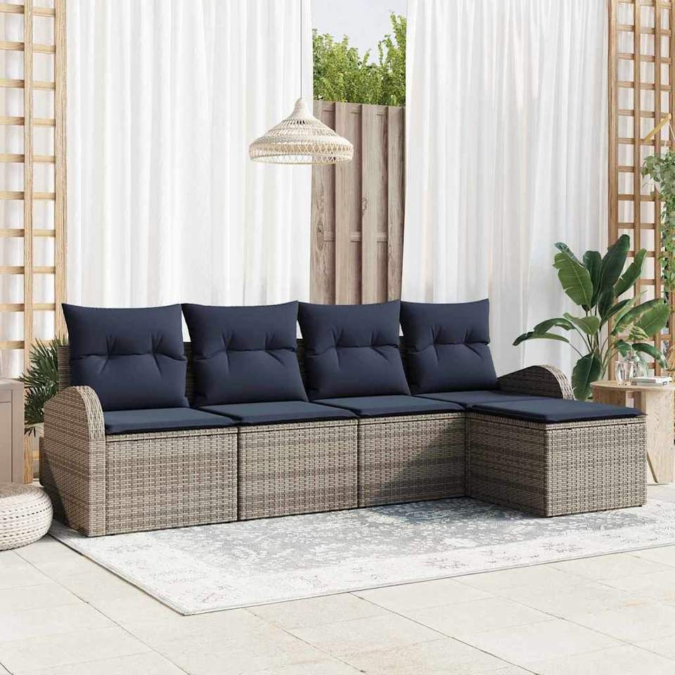 Ensemble de canapés de jardin en polyrotin gris avec coussins imperméables, mobilier d'extérieur au design contemporain