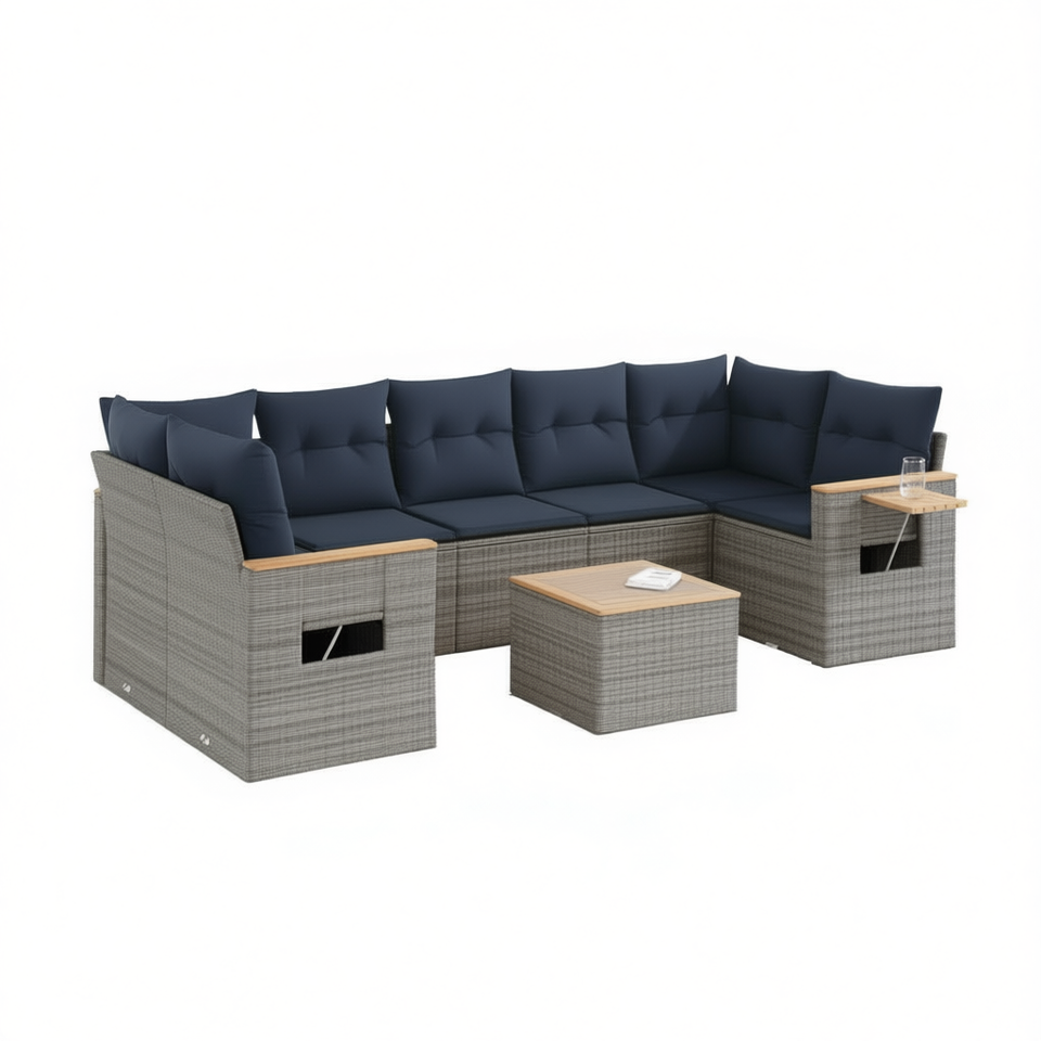 Ensemble de canapés de patio en polyrotin gris, 9 pièces avec coussins, meubles de jardin d'extérieur, design contemporain