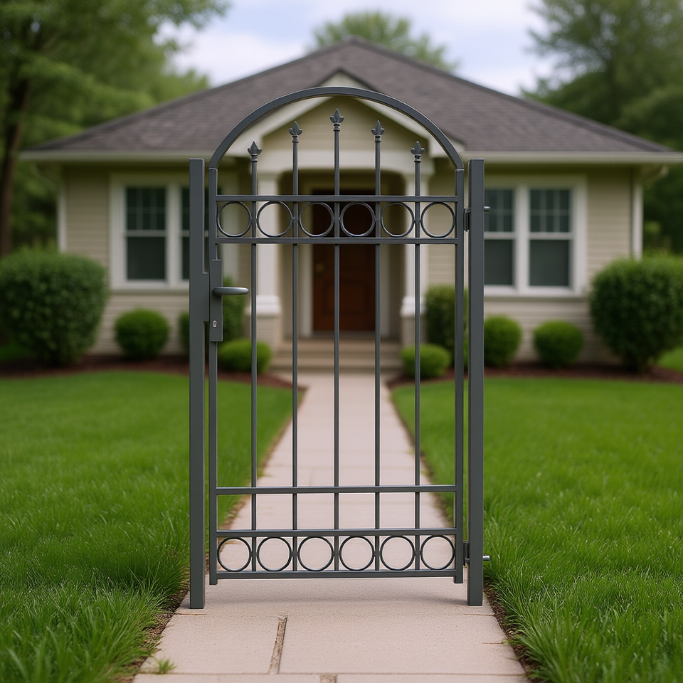 Portail en acier thermolaqué gris 39,37 x 68,90, design traditionnel, style battant avec serrure