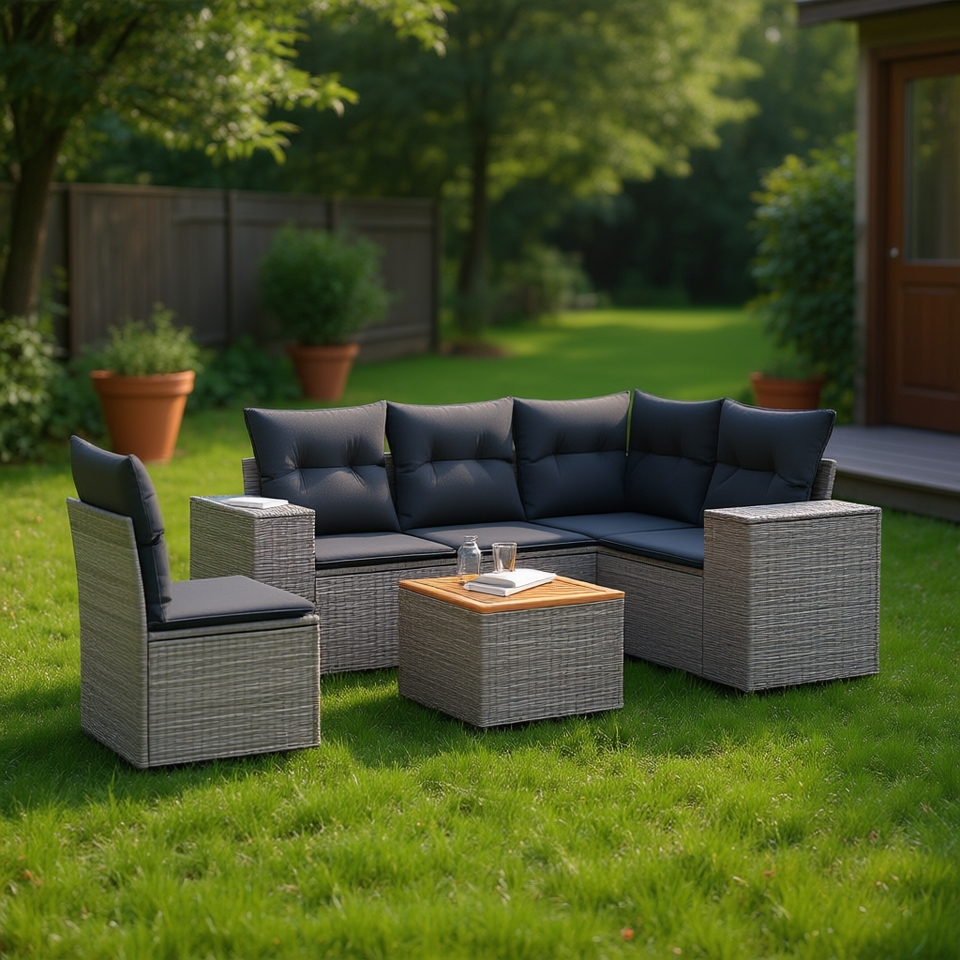 Ensemble de canapés de jardin en rotin gris 4 places, mobilier d'extérieur résistant aux intempéries, design contemporain