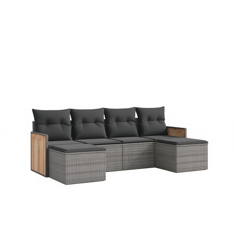 Ensemble de canapés de jardin en rotin gris 4 places, résistant aux intempéries, mobilier d'extérieur au design contemporain, structure en teck