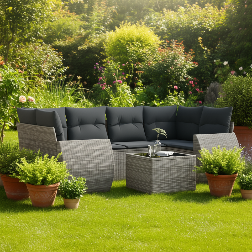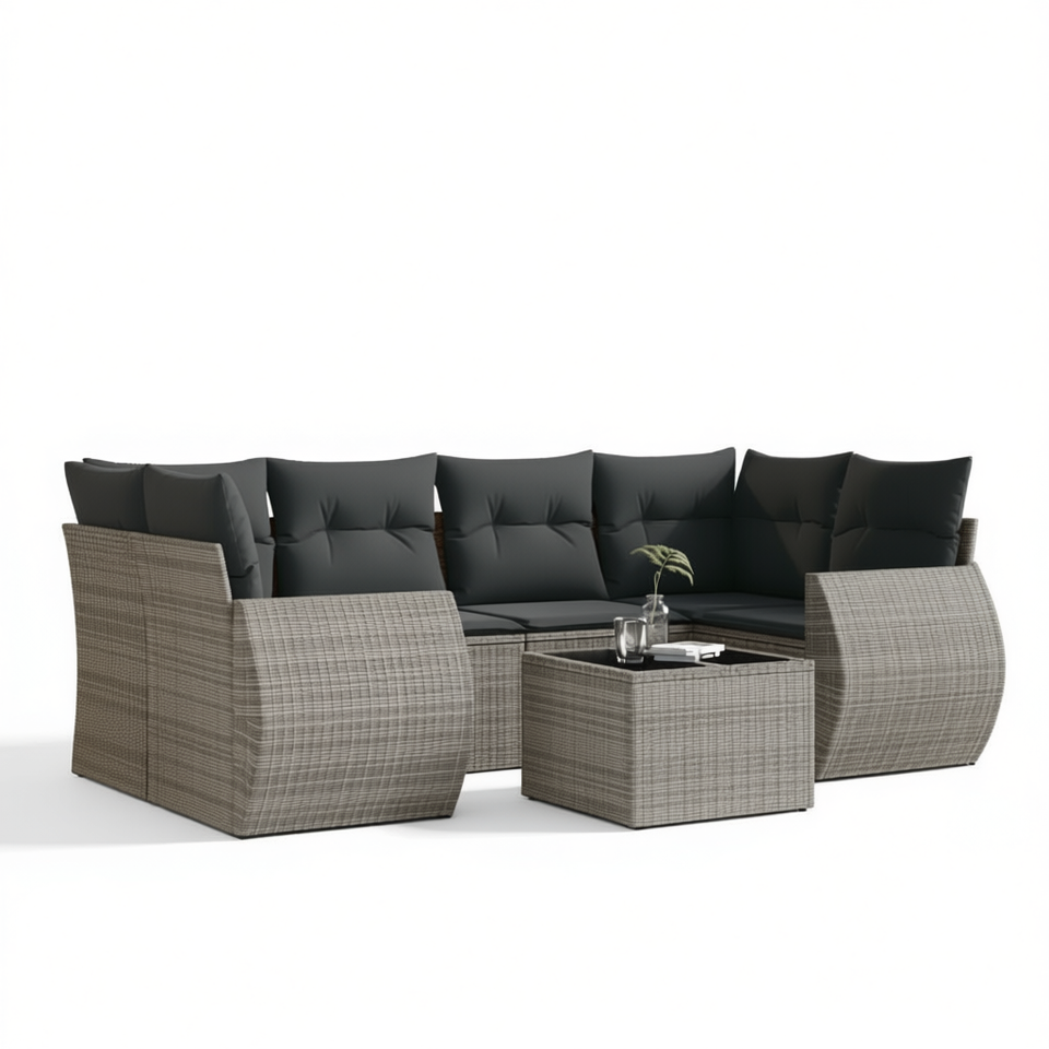 Ensemble de canapés de jardin en rotin gris 6 places, résistant aux intempéries, mobilier d'extérieur au design contemporain
