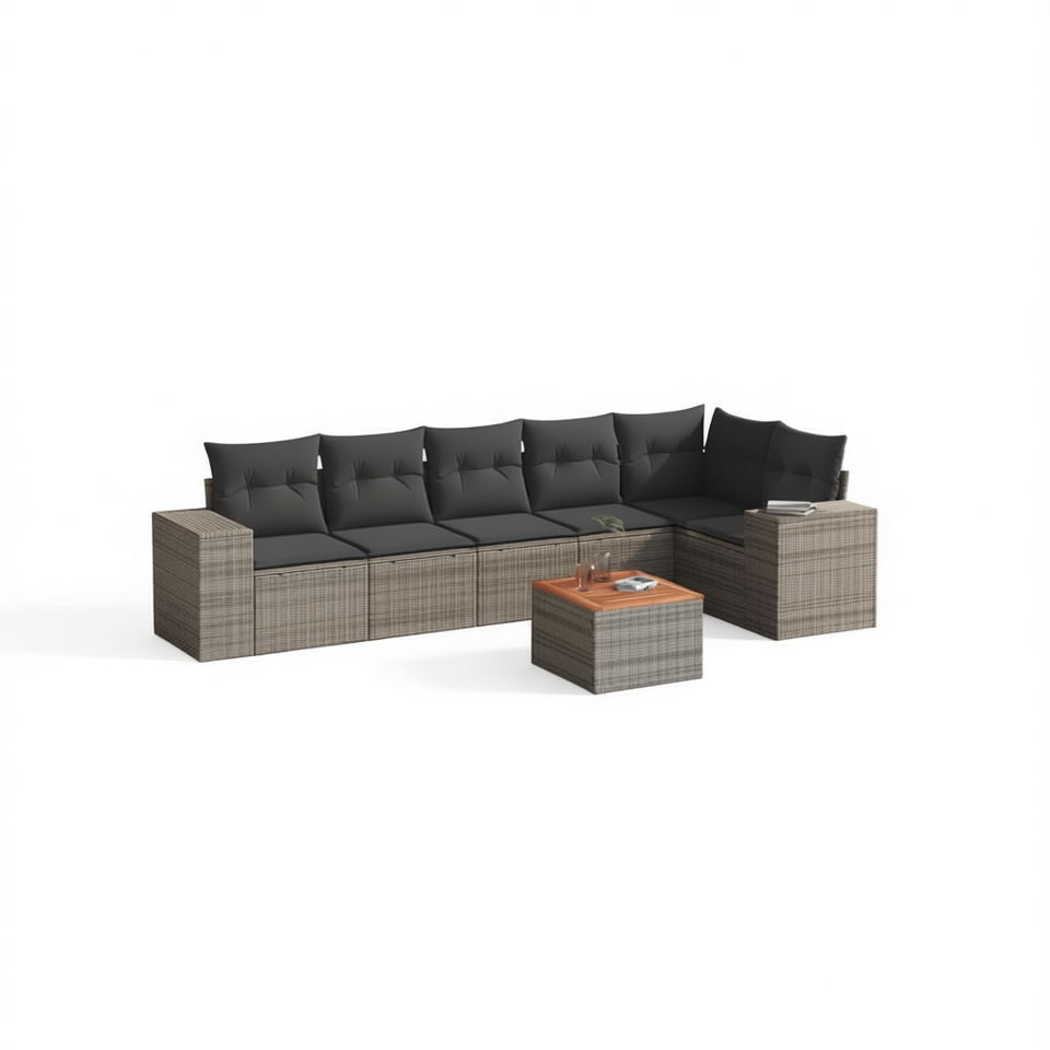 Ensemble de canapés de jardin en rotin gris 6 places, mobilier d'extérieur contemporain résistant aux intempéries, ensemble de salon de patio