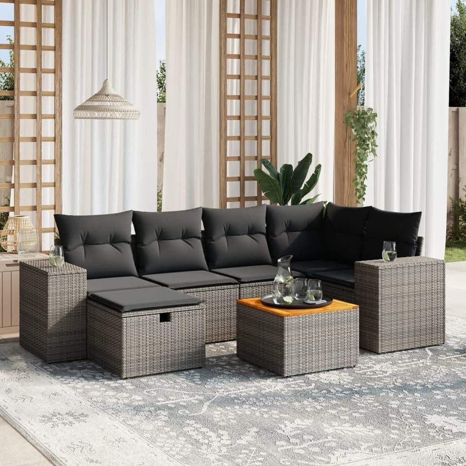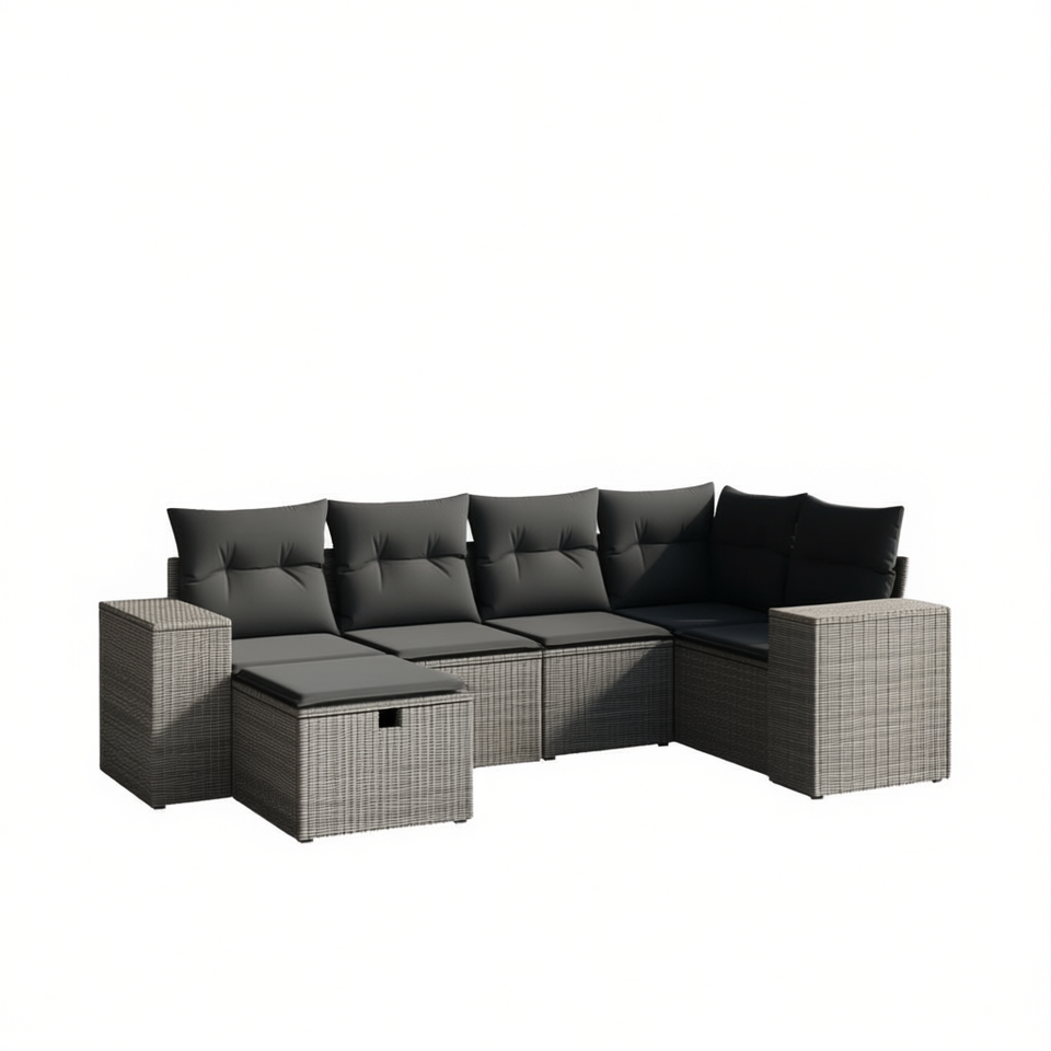 Ensemble de canapés de jardin en rotin gris 6 places, mobilier d'extérieur au design contemporain