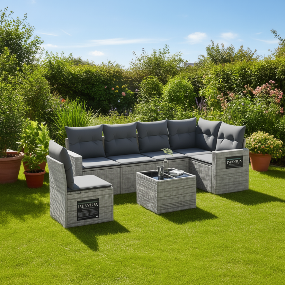 Ensemble de canapés de jardin en rotin gris 6 places, résistant aux intempéries, mobilier d'extérieur au design contemporain