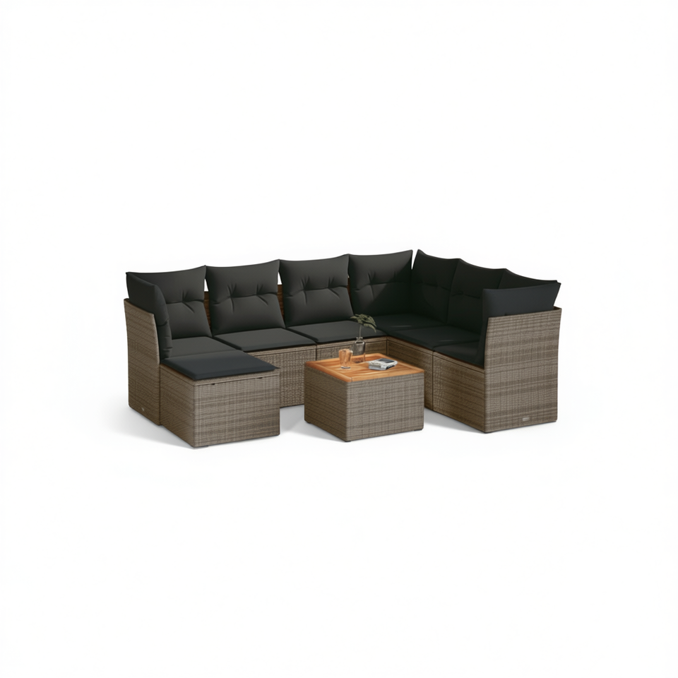 Ensemble de canapés de jardin en rotin gris 6 places, résistant aux intempéries, mobilier d'extérieur au design contemporain