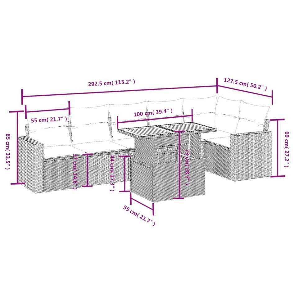 Ensemble de canapés de jardin en rotin gris 6 places, mobilier d'extérieur au design contemporain, structure en osier