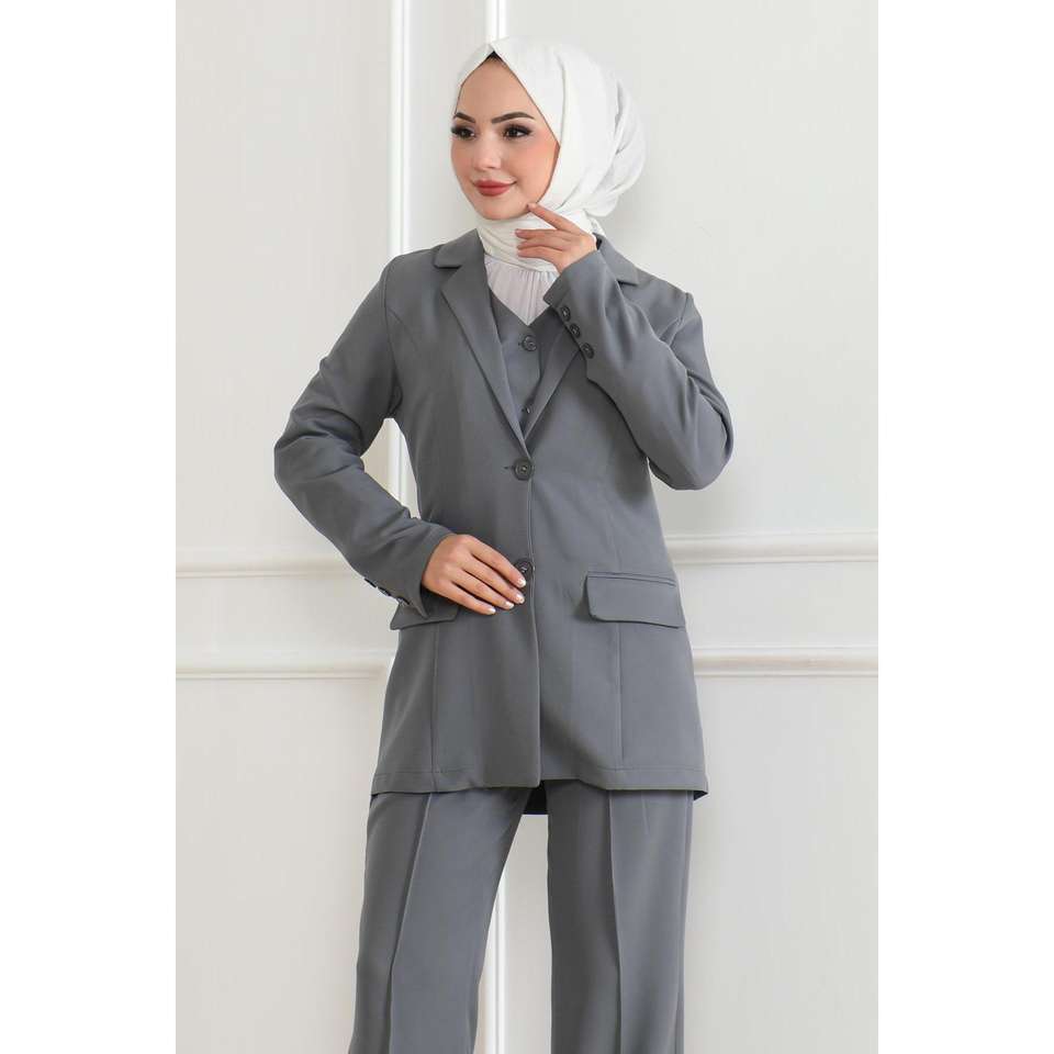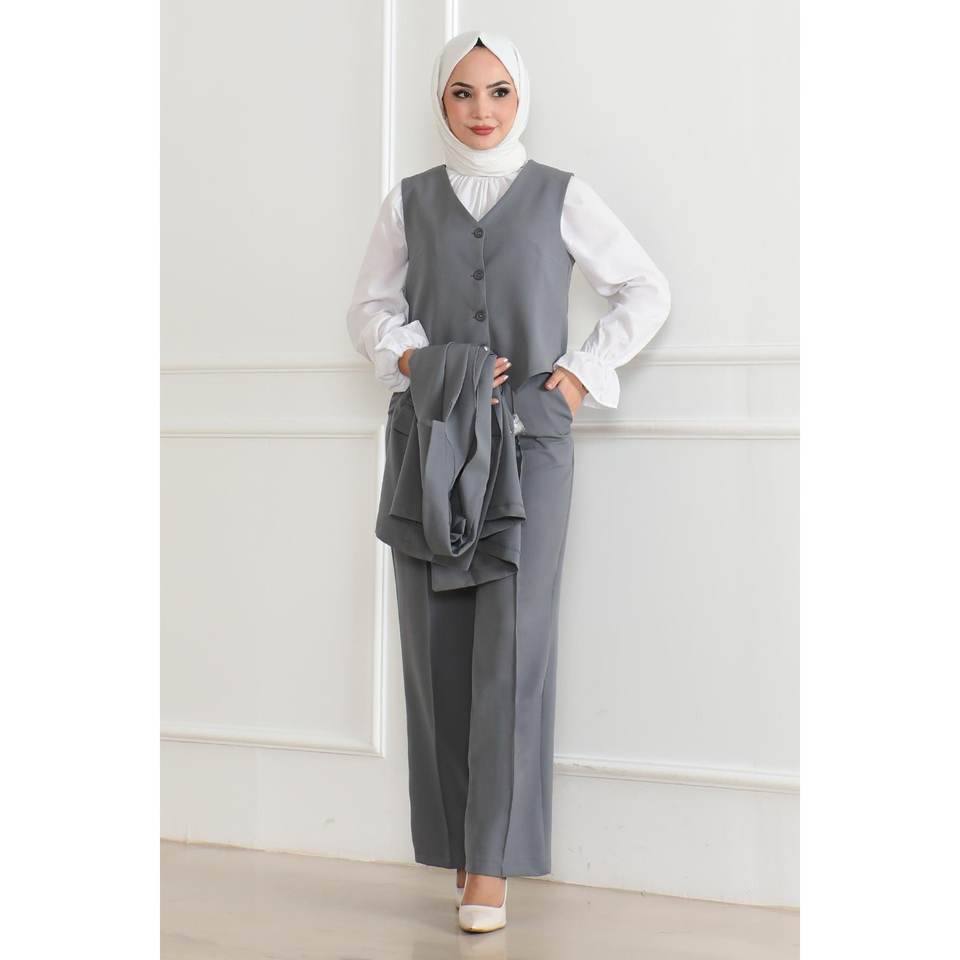 Ensemble deux pièces gris MSW19222-5 – Style décontracté et sexy pour club, gilet et haut long, bas mi-longueur, tenues assorties, collection automne 100%
