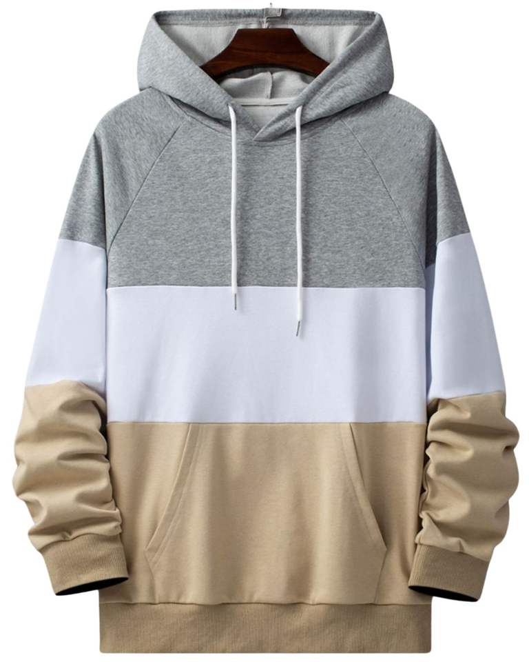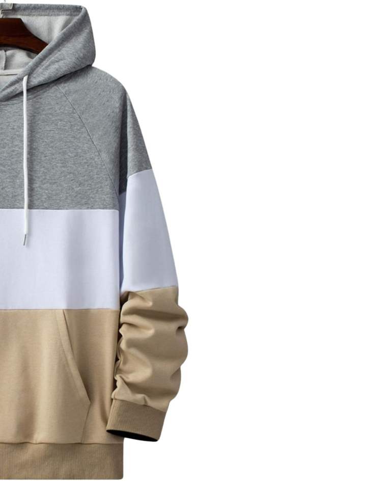 Grey White Beige Colorblock Hoodie Unisex Casual Warm Fleece Pullover Soft Streetwear Hooded Sweatshirt With Kangaroo Pocket