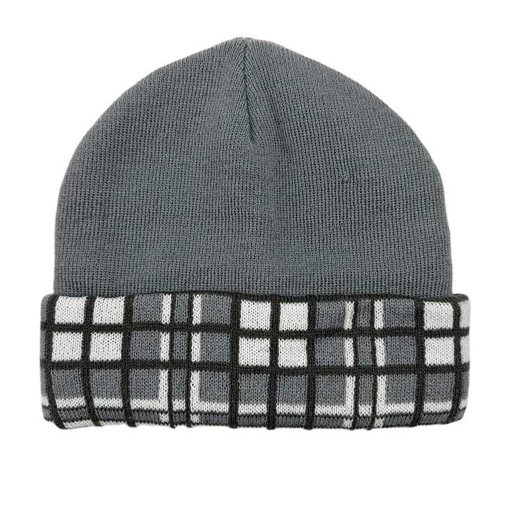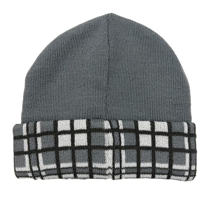 Chapeau tricoté à motif à carreaux gris et noir, logo personnalisé, acrylique, jacquard, pompon, bonnet d'hiver