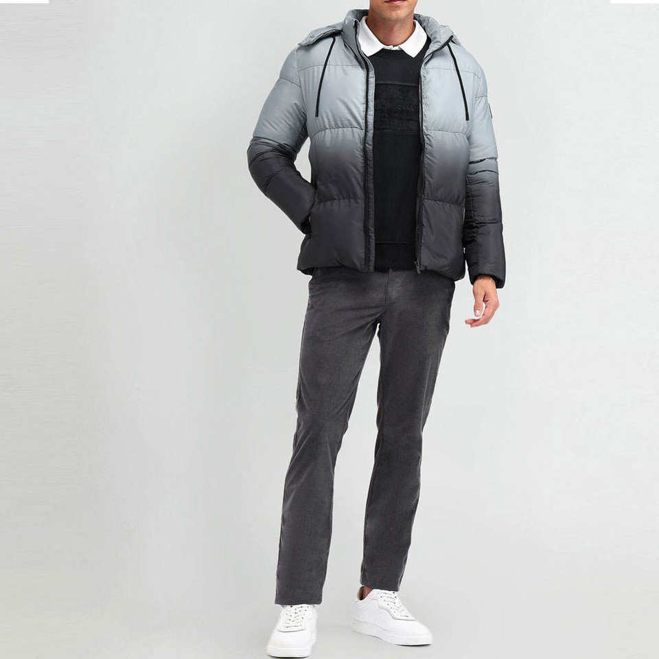 Veste matelassée imperméable coupe-vent respirante unisexe à dégradé gris, rembourrage chaud matelassé, capuche isolée, vêtements d'extérieur d'hiver