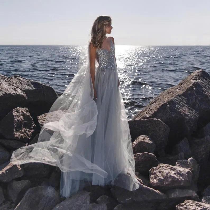 Name product:Grey wedding dress blends soft tones with intricate floral details