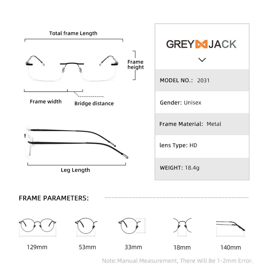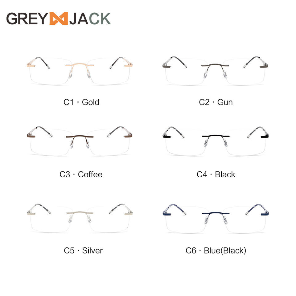 Lunettes sans monture Greyjack, rectangulaires, en métal, unisexes, design fin, ME2031, verres en acétate