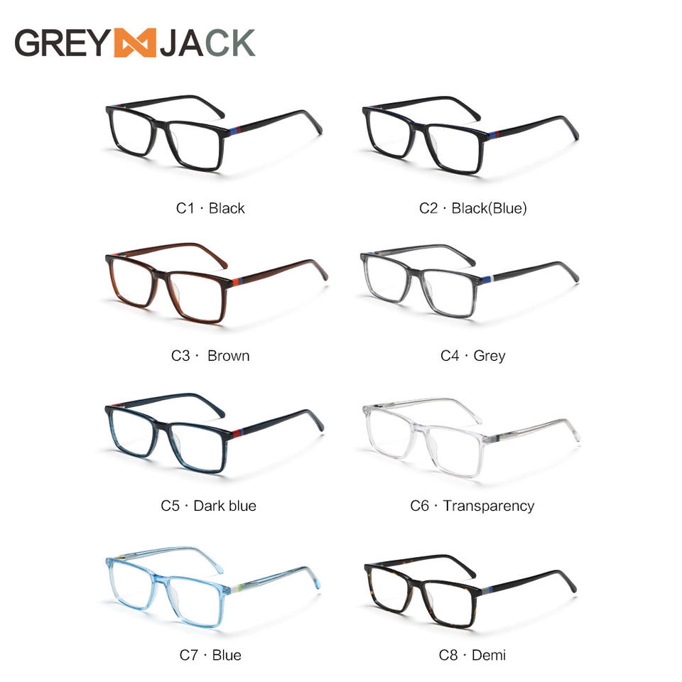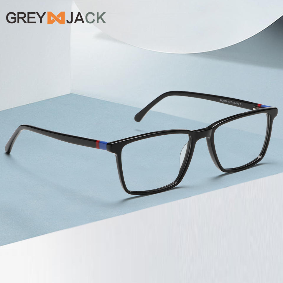Monture de lunettes rectangulaire en acétate Greyjack AC1008, pont moyen, unisexe, avec charnières à ressort