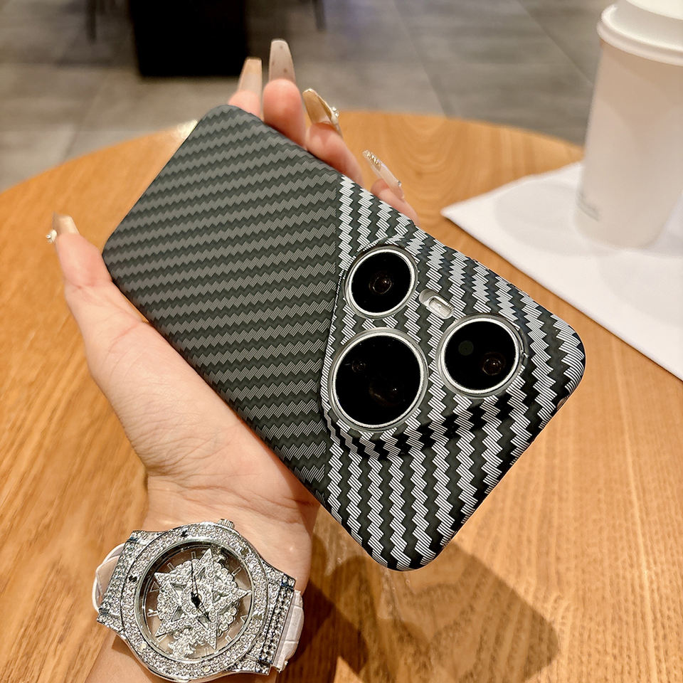 Coque arrière en fibre de carbone à motif quadrillé pour VIVO OPPO ONEPLUS REDMI HONOR IQOO PC, coque rigide pour appareil photo